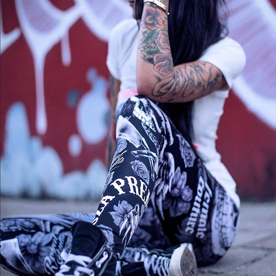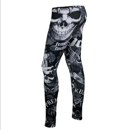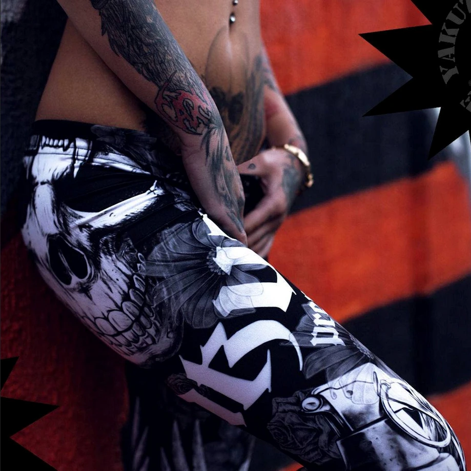 Yakuza Premium Dámské legíny Damen 1970 - černéDívčí legíny 1970 v černé barvě z kolekce Yakuza Premium Selection. Mají celoplošný potisk s různými logy a lebkami. Legíny mají velmi přiléhavý střih a pouze jeden vnitřní šev, takže se velmi pohodlně nosí. Manžeta a látka jsou velmi pružné, takže velmi dobře přilnou k pokožce.Yakuza Premium