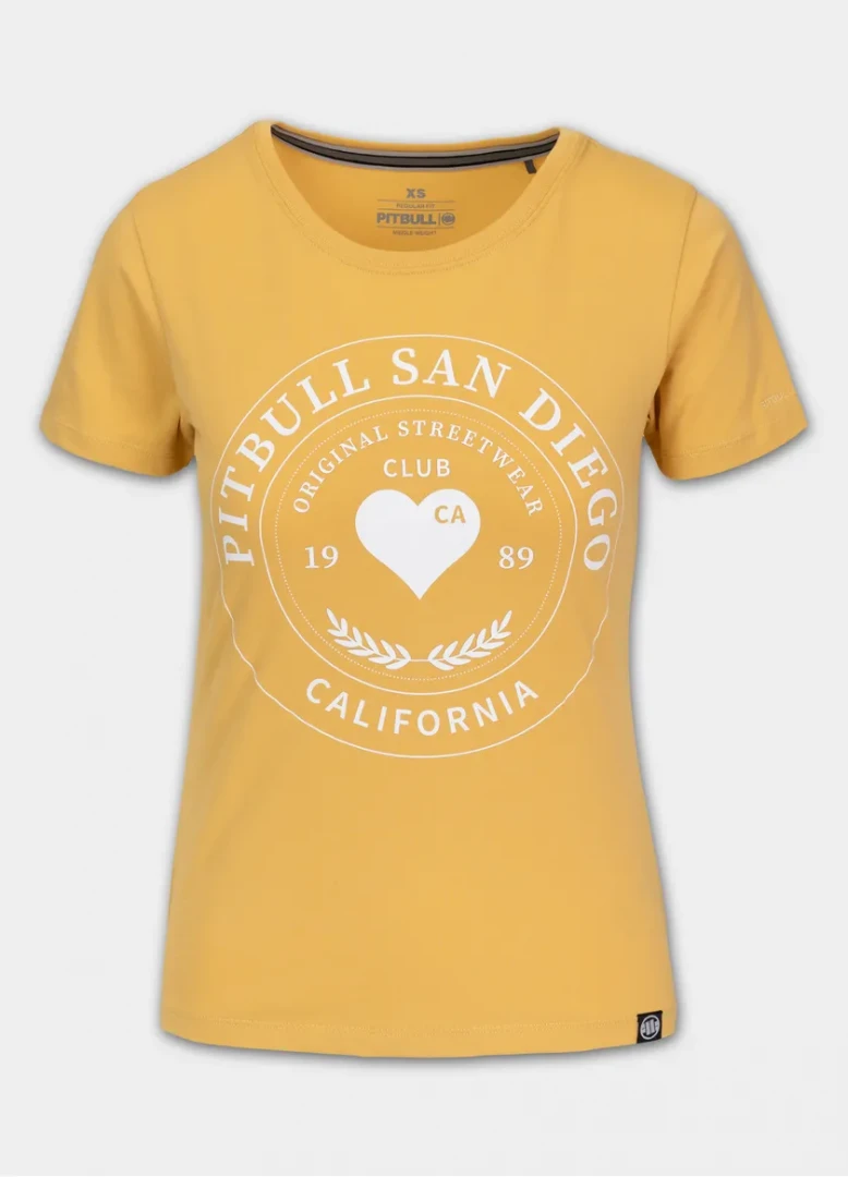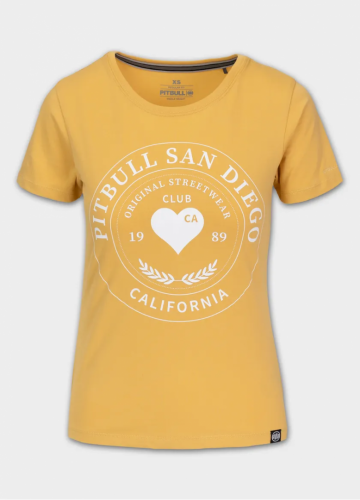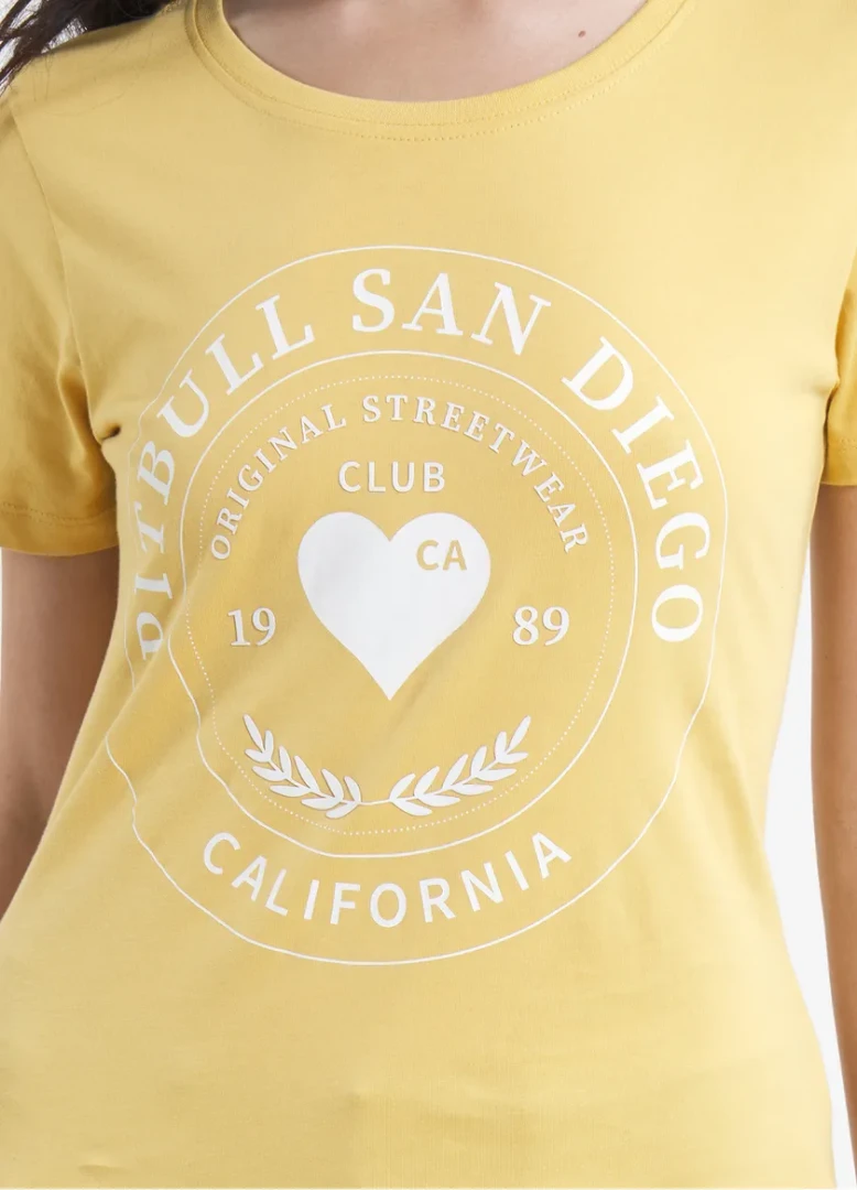 PitBull West Coast Dámské triko HEARTIE - žlutéDámské tričko z nejnovější kolekce PIT BULL WEST COAST - HEARTIE. Dámské tričko je vyrobeno z nejkvalitnější bavlny o hmotnosti 170 g / m2. Kulatý výstřih s lemováním na vnitřní straně.Vlastnosti Produktu:- pravidelný, pohodlný střih- Tričko z vysoce kvalitní bavlněné tkaniny o gramáži 170 g/m2.- kulatý výstřih s lemováním na vnitřní straně- velký potisk a nápis PITBULL na přední straně- malá nášivka na spodním okraji- vyšívaný nápis PITBULL na levém rukávu- složení materiálu: Materiál: 100% bavlnaPitBull West Coast