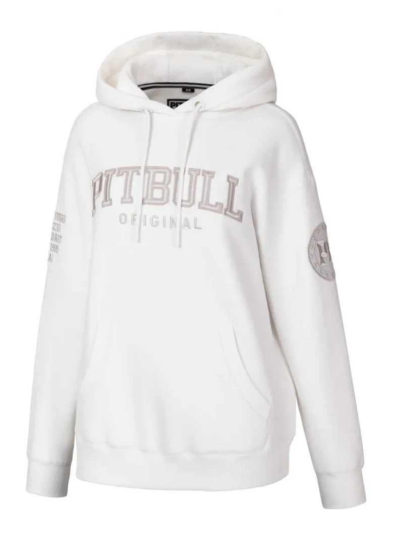 PITBULL WEST COAST Dámská mikina Tyrian - bíláPITBULL WEST COAST Dámská mikina Tyrian v bílé barvě. Dámská mikina Aragona z vysoce kvalitní, silné tkaniny 360 g/m2.- pohodlný volný oversize střih- vyrobeno z vysoce kvalitní, silné tkaniny 360 g/m2- díky použití syntetických vláken si mikina zachovává svůj střih i po mnoha vypráních- tkanina na vnitřní straně je kartáčovaná a příjemná na dotek- zesílené žebrované manžety a spodní lem.- nastavitelná kapuce se stahovací šňůrkou- velká přední klokaní kapsa s žebrovaným lemem na bocích- měkké lemování na vnitřní straně límce, které chrání před odřením- velká nášivka PITBULL na hrudi- velká nášivka na levém rukávu- nášivka na pravém rukávu- ke spojení látek jsou použity švy Autolap, které jsou ploché a odolné proti roztržení- složení tkaniny: Materiál: 60% bavlna / 40% polyester PITBULL WEST COAST