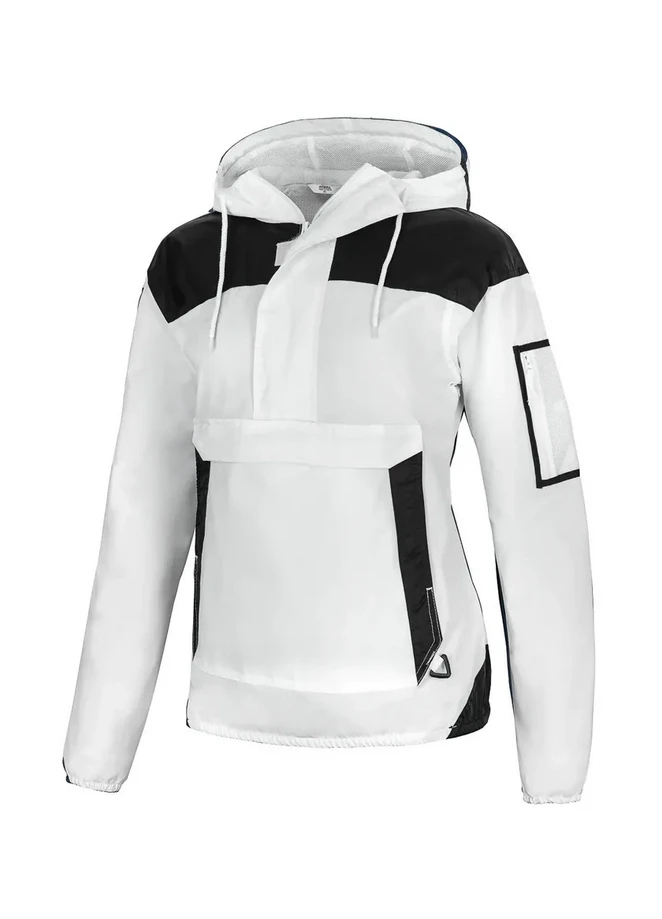 Dámská bunda Pitbull West Coast Terella - bíláDámská bunda z nejnovější kolekce PIT BULL WEST COAST - Terella! Dámská bunda Pit Bull West Coast Terella v bílé barvě. Je vyrobena z vysoce kvalitní nylonové tkaniny odolné proti dešti a větru.- klokaní řez- podšívka z lehké polyesterové síťoviny, která navíc podporuje systém cirkulace vzduchu.- větrací otvory v podpaží se zipy- pevné úzké žebrování na rukávech a ve spodní části bundy.- delší zaoblená záda- integrovaná kapuce s nastavitelnou šňůrkou- vysoký límec chránící před chladem- rozepínání u výstřihu na zip, navíc kryté záložkou na suchý zip- prostorná přední kapsa na zip a suchý zip- další malá kapsa na zip na levém rukávu- velký potisk Pitbull na kapuci- složení materiálu: vnější strana - 100% nylon / podšívka - 100% polyesterPITBULL WEST COAST
