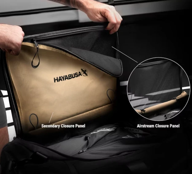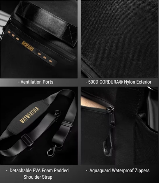 - Speciální kapsa na boxerské rukavice nebo boty s rozšiřitelným designem