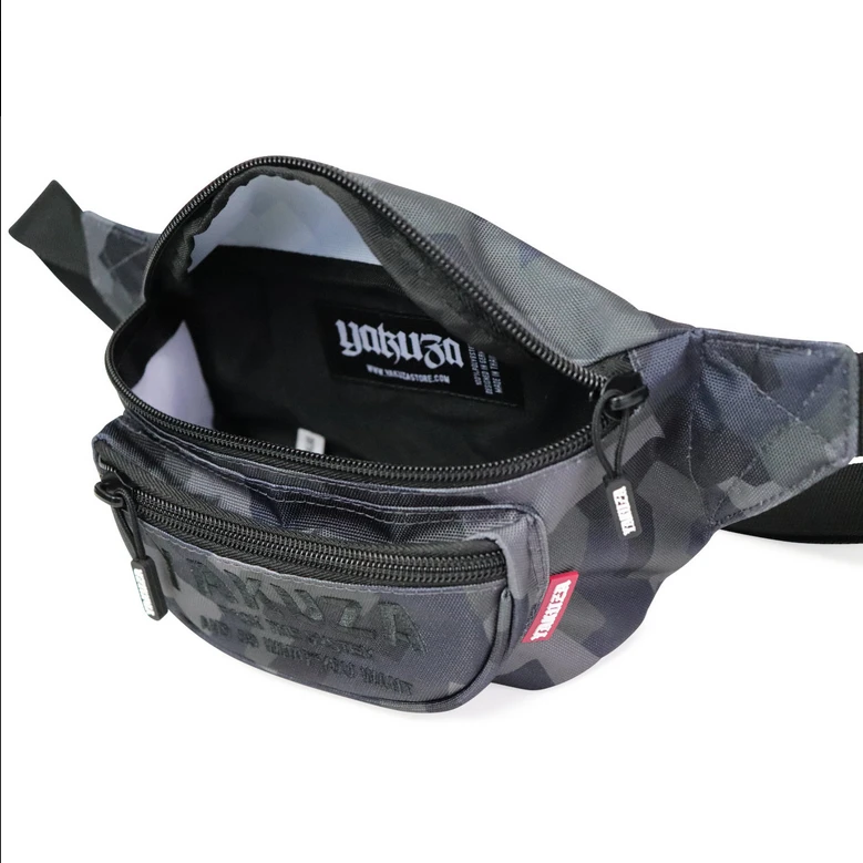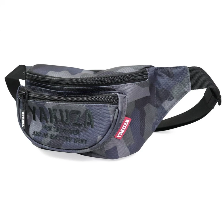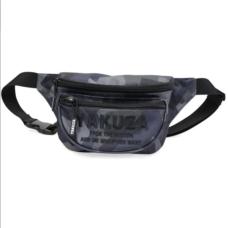 Yakuza Ledvinka New Struggle - šedáYAKUZA NEW STRUGGLE unisex Ledvinka. Ledvinka je vaším novým, neformálním společníkem na cesty, na procházku nebo na festival. Ledvinka k pasu je vybavena prostornými přihrádkami a nastavitelným bederním popruhem a do tajné přihrádky v zadní části můžete uložit obzvláště důležité věci. Černá výšivka loga na moderním kamuflážním vzoru působí jednoduše a nadčasově. Kus je doplněn pogumovaným logem Yakuza na přední straně a taháčky zipu zdobenými logem.- Material: 100% PolyesterYakuza