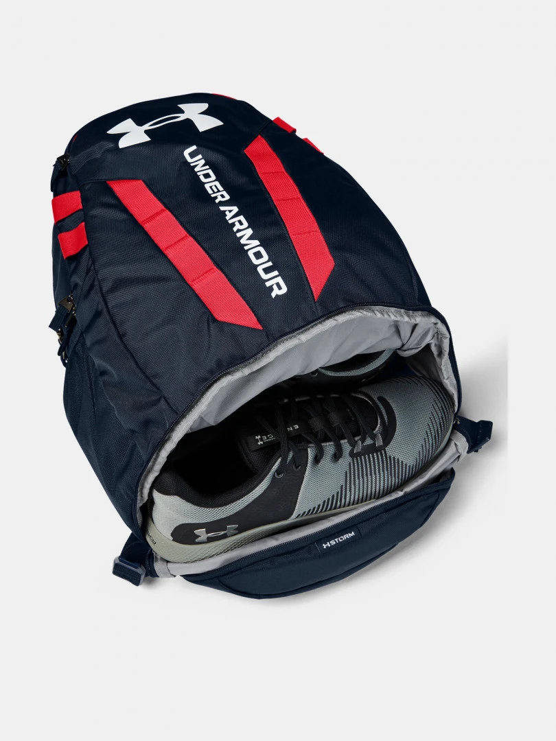 Sportovní batoh UNDER ARMOUR Triumph Hustle 5.0 - modrýSportovní batoh UNDER ARMOUR Hustle 5.0 v modré barvě. Batoh pro každodenní nošení ať už na trénink nebo do práce. Batoh je tvořen čtyřmi kapsami z nichž hlavní kapsa obsahuje polstrovanou přihrádku na notebook. Povrchová úprava materiálu UA Storm dělá batoh voděodolný a plně nastavitelné popruhy umožňují jeho pohodlné nošení každému z nás. - Technologie UA Storm1 poskytuje vysoce odolnou povrchovou úpravu.- Prodyšný polstrovaný zadní panel a nastavitelné ramenní popruhy HeatGear pro maximální pohodlí.- Soft-lemované pouzdro na notebook 15 .- Kapsa odolná proti vodě na přední straně.- Velká, vyztužená kapsa na prádlo / boty umístěná na spodní straně.- 2 kroužky D na ramenních popruzích pro další upevňovací body.- Dvě boční kapsy na láhev s vodou.- Robustní spodní panel odolný proti oděru.- Horní úchopná rukojeť.- Rozměry: 51 x 32 x 16 cm.- Objem: 29 l.UNDER ARMOUR