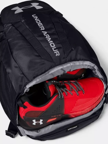 Sportovní batoh UNDER ARMOUR Triumph Hustle 5.0 - černýSportovní batoh UNDER ARMOUR Hustle 5.0 v černé barvě. Batoh pro každodenní nošení ať už na trénink nebo do práce. Batoh je tvořen čtyřmi kapsami z nichž hlavní kapsa obsahuje polstrovanou přihrádku na notebook. Povrchová úprava materiálu UA Storm dělá batoh voděodolný a plně nastavitelné popruhy umožňují jeho pohodlné nošení každému z nás. - Technologie UA Storm1 poskytuje vysoce odolnou povrchovou úpravu.- Prodyšný polstrovaný zadní panel a nastavitelné ramenní popruhy HeatGear pro maximální pohodlí.- Soft-lemované pouzdro na notebook 15 .- Kapsa odolná proti vodě na přední straně.- Velká, vyztužená kapsa na prádlo / boty umístěná na spodní straně.- 2 kroužky D na ramenních popruzích pro další upevňovací body.- Dvě boční kapsy na láhev s vodou.- Robustní spodní panel odolný proti oděru.- Horní úchopná rukojeť.- Rozměry: 51 x 32 x 16 cm.- Objem: 29 l.UNDER ARMOUR