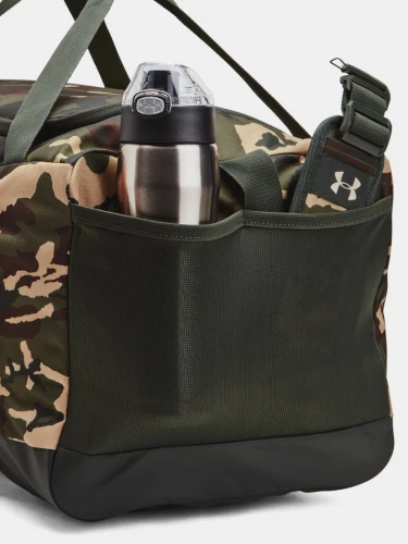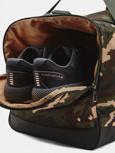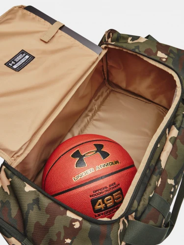UNDER ARMOUR Sportovní taška UA Gametime - zelenáKrásná sportovní taška přes rameno s maskáčovým designem v zelené barvě. Hodí se nejen na sport, ale i cestování a běžné nošení. Taška je vyrobena z velmi odolného materiálu proti prodření.Vlastnosti produktu:- Technologie UA Storm poskytuje vysoce vodoodpudivou povrchovou úpravu odolnou proti živlům.- Odolný spodní panel potažený PU se pro větší odolnost rozšiřuje až na přední stranu.- Polstrované pouzdro na notebook pojme až 15 notebook.- Dvě síťované kapsy na láhev s vodou.- Velká přihrádka na prádlo/obuv na levé straně.- Přední kapsa na cennosti se zapínáním na přezku.- Odnímatelný polstrovaný ramenní popruh lze snadno uložit do boční kapsy.- Polstrované madlo.UNDER ARMOUR