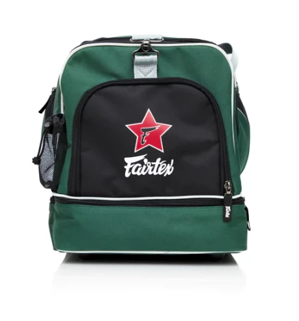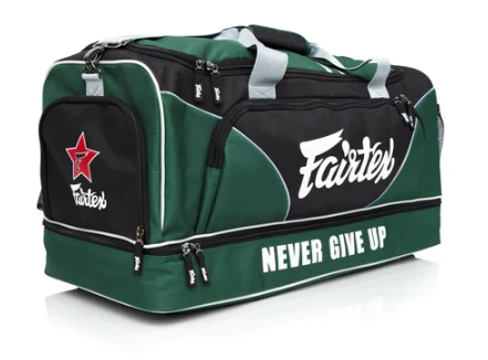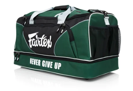 SPORTOVNÍ TAŠKA FAIRTEX BAG2 je velká taška, která pojme vše, co během tréninku potřebujete. Vysoce kvalitní voděodolný nylon a zipy zaručují dlouhou životnost tašky. Ve spodní části tašky máme speciálně určené místo pro mokré oblečení po tréninku. Zipy v tašce mají speciální otvory, takže je zde ochrana proti otevření, což činí tašku bezpečnou pro cestování letadlem.