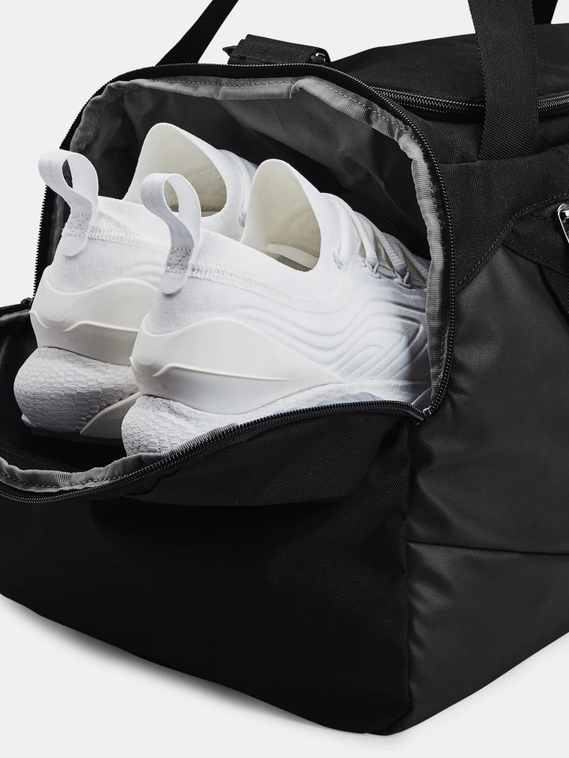 UNDER ARMOUR Sportovní taška Undeniable DUFFLE 5.0 MD - černáKrásná sportovní taška přes rameno s atraktivním designem v černé barvě. Hodí se nejen na sport, ale i cestování a běžné nošení. Taška je vyrobena z velmi odolného materiálu proti prodření.Vlastnosti produktu:- Technologie UA Storm poskytuje vysoce vodoodpudivou povrchovou úpravu odolnou proti živlům.- Pevné, pěnou potažené dno a boční panely z TPU pro větší odolnost.- Dvojitá kapsa na láhev s vodou.- Velká větrací kapsa na prádlo nebo boty a vnitřní kapsy na drobnosti pro lepší organizaci.- Popruhy Molle a velká přední kapsa na zip.- Odnímatelný, polstrovaný ramenní popruh HeatGear se snadno schová do boční kapsy.- Polstrované horní madlo.- Šířka 30cm, výška 29cm, délka 62cm.- Objem 58L.UNDER ARMOUR