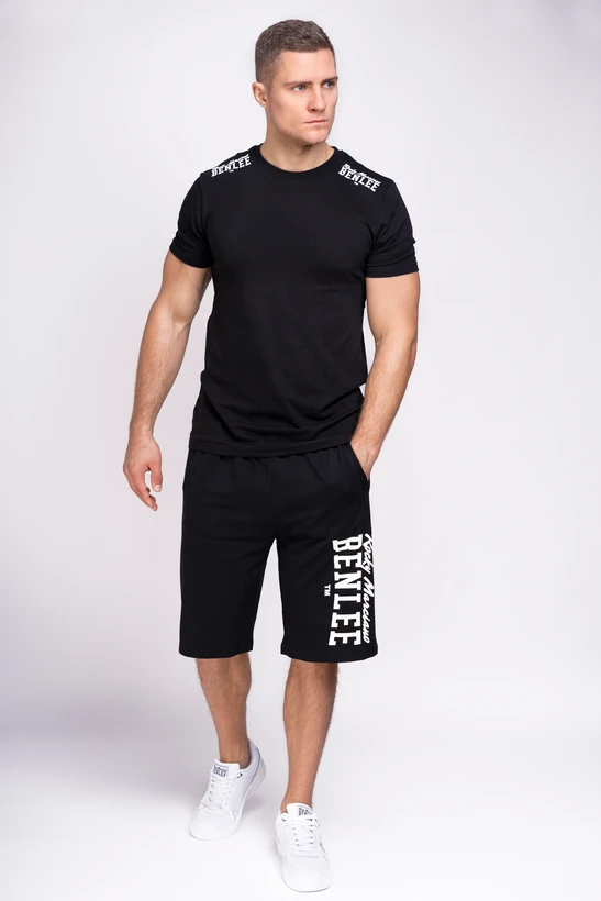 Pánské šortky BENLEE SPINKS - černéTyto tréninkové šortky od společnosti BENLEE nejen skvěle vypadají, ale jsou také velmi pohodlné a ideální pro box a fitness trénink. Stahovací šňůrka v pase zajišťuje trvalé optimální přizpůsobení i při zátěži a kapsy na nohavicích dělají z šortek praktického společníka. - Sportovní šortky BENLEE- Pravidelný střih- Vyrobeno z čisté bavlny (nebo směsové tkaniny)- Barevně kontrastní logo na nohavici kalhot- Ideální střih díky elastickému pasuBENLEE