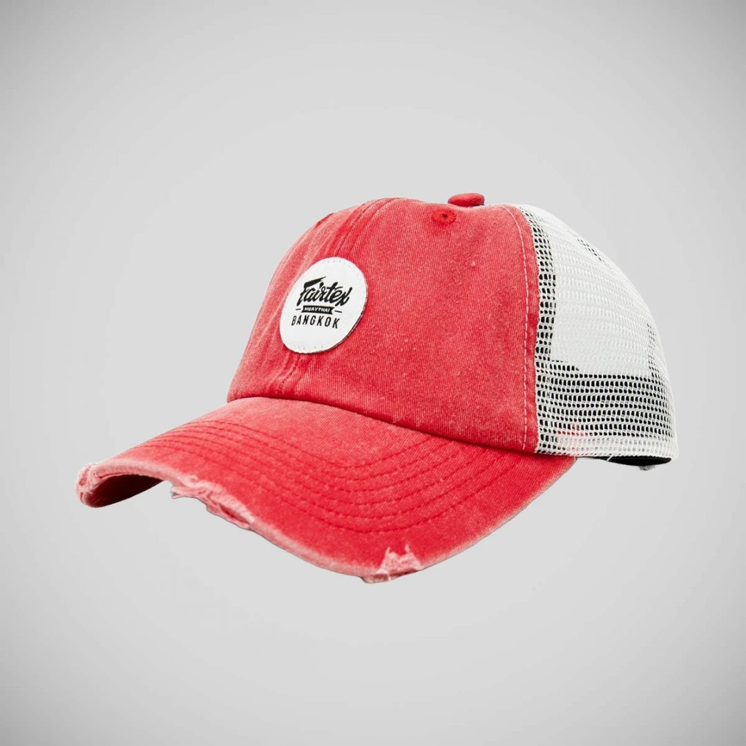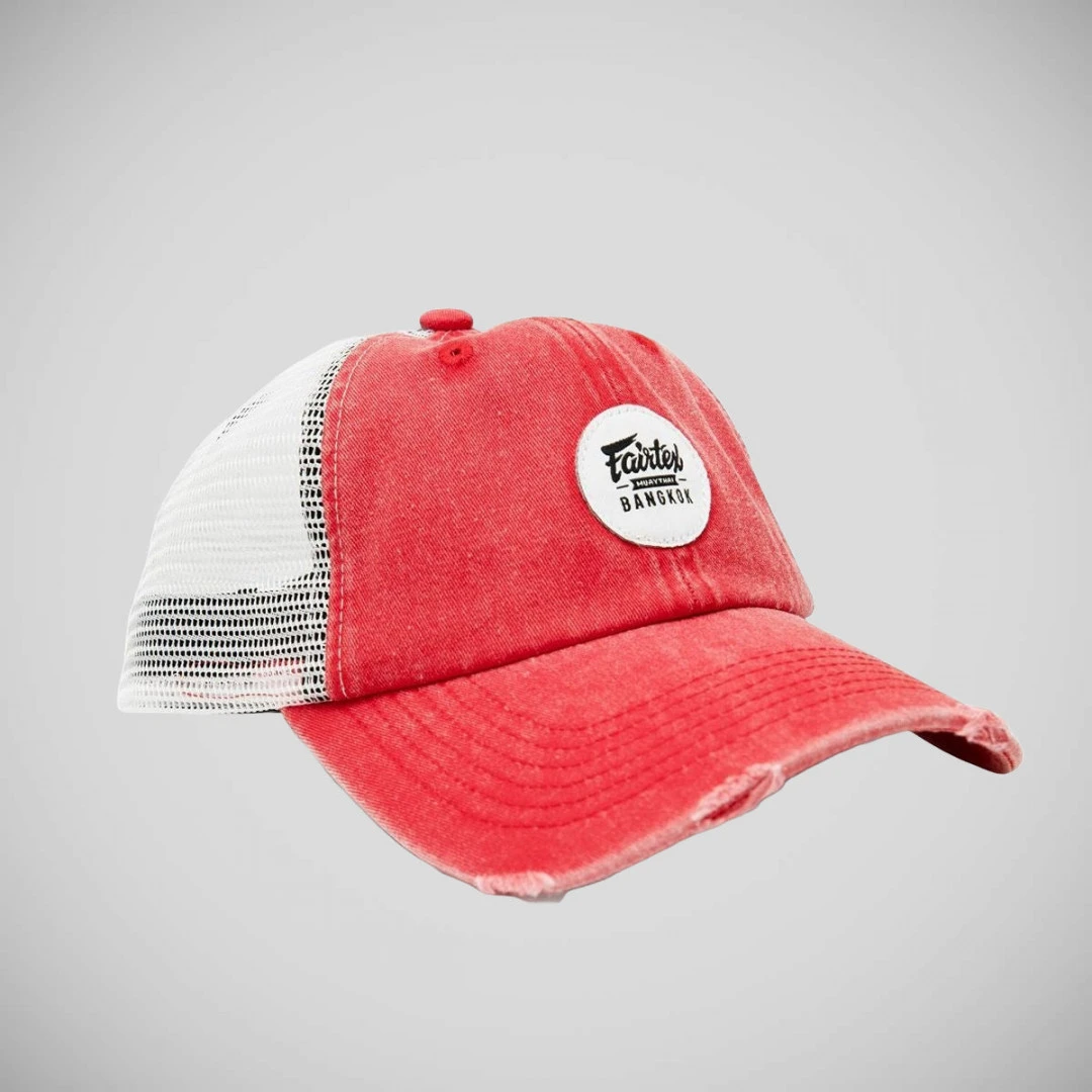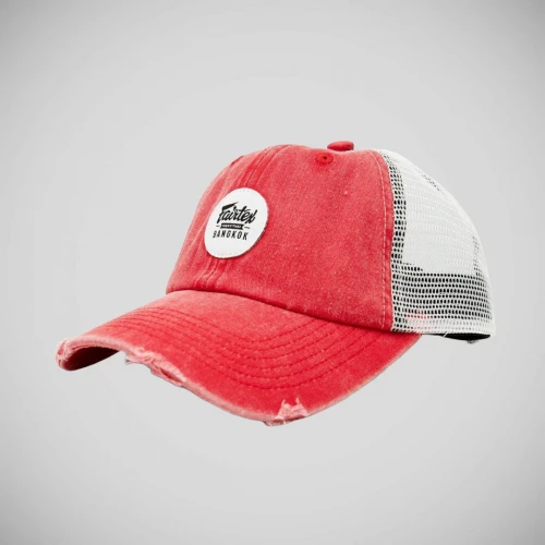 Uvolněte fúzi stylu a funkce s červeným/bílým Fairtex Cap11 opotřebovaným vintage trucker cap - vrchol kvality pro bojové sportovní nadšence.