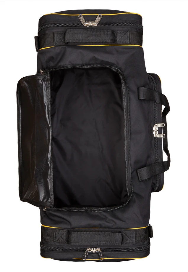 BENLEE Sportovní taška LOCKER - černáKlasická sportovní taška s barevnými kontrastními pruhy na lemovce, dvěma nosnými popruhy a jedním popruhem přes rameno, ideální pro box a fitness trénink. Díky prostorné hlavní přihrádce a mnoha bočním přihrádkám na zip lze velmi snadno uložit vybavení a oblečení. K dispozici jsou také dvě dlouhé přihrádky s logem BENLEE na přední straně, do kterých lze uložit například mobilní telefon, peněženku a klíče.- Praktická sportovní taška od BENLEE- K dispozici jsou různé velikosti- Vyrobeno ze 100% polyesteru- Nosný a ramenní popruh- Několik bočních kapes na zip- Materiál: 100% polyester- Vnější rozměry: velikost L: cca 60 cm x 36 cm x 36 cmBENLEE