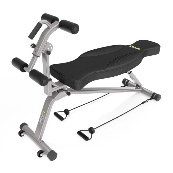 Zádová opěra je vyvedena z hrubé desky opatřené vysokou vrstvou pěny pro maximální pohodlí během tréninku. Ergonomické polstrování je vyrobeno z umělé kůže s karbonovým vzhledem, je odolné vůči potu a také zamezuje "klouzání" během tréninku.