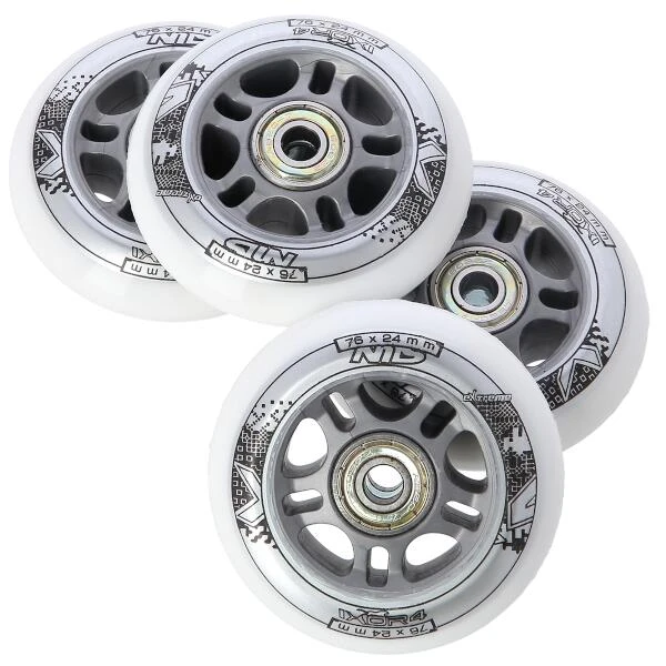 Náhradní sada koleček velikosti 76x24 mm mléčné barvy a tvrdostí 82 A s ložisky ABEC 7.