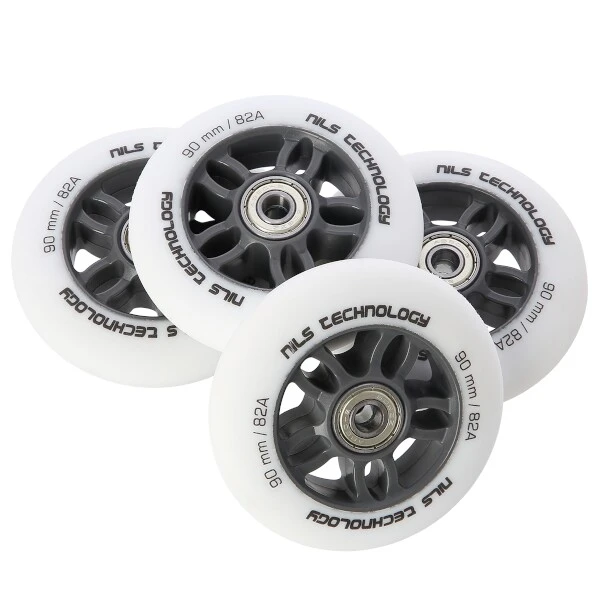 Matná kolečka NILS Extreme PU 90x24 82A s ložisky ABEC 9, bílá, 4 ks