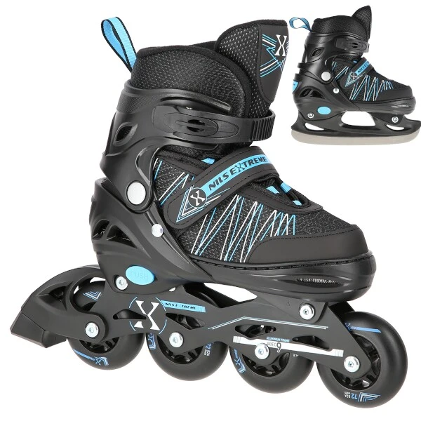 NILS Extreme NH11912 A jsou celoroční brusle pro všechny milovníky letního i zimního bruslení. Brusle mají vyměnitelný podvozek, takže se dají použít buď jako klasické In-line, nebo lední brusle.