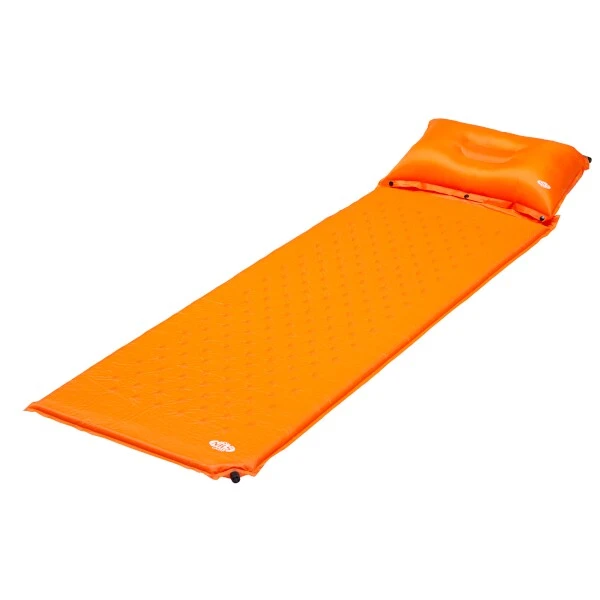 Samonafukovací karimatka NILS CAMP NC4345 zajistí kvalitní spánek během kempování a dovolených pod stanem. Podložka je ale vhodná i k vodě a všude tam, kde si chcete příjemně poležet. Samonafouknutí zajišťuje vnitřní, pěnový materiál s otevřenými póry. Po povolení ventilu do sebe nasává vzduch a dostává se tak do původního stavu. Závěrem je ještě potřeba podložku dofouknout na požadovanou tvrdost. Skládání se provádí otevřením ventilu a srolováním od opačné strany, než je ventil. Karimatku poté vložíte do dodávaného vaku. Na model NC4345 byl použit velice odolný polyester 190T potažený vrstvou PVC, tato kombinace zajišťuje vysokou odolnost a karimatka se dá položit i na nerovný povrch. Polštářek je odnímatelný a oproti karimatce není vyplněn pěnou a je potřeba ho celý nafouknout. Součástí balení je také opravná sada, která se hodí v případě poškození.