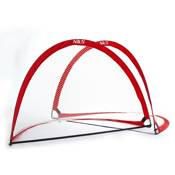 Samorozkládací fotbalové branky NILS s rozměrem 180 x 120 x 120 centimetrŮ. Rozložení těchto branek je velice jednoduché a rychlé. K brankám jsou k dispozici i kolíky pro uchycení na travnatém povrchu.
