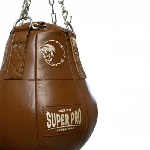 Boxovací pytel Super Pro Vintage Uppercut Tento krásný boxovací pytel Uppercut od společnosti Super Pro je vyroben z velmi pevné a robustní kůže. Ta se téměř neopotřebovává, a proto je vhodná jak do posilovny, tak na doma. Tvar je ideální pro trénink horních úderů a široké škály úderů. "Nutnost" pro každou posilovnu.- Pevný a vhodný pro každého;- pravá kůže nejvyšší kvality;- pro použití doma i v tělocvičně;- naplněný čistou textilní směsí s ideální tvrdostí;- ideální pro rozpažováníSuper Pro