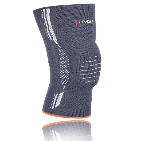HMS KO1125 je bandáž na koleno s integorvaným silikonovým kroužkem pro stabilizaci čéšky bez omezení hybnosti kolene.