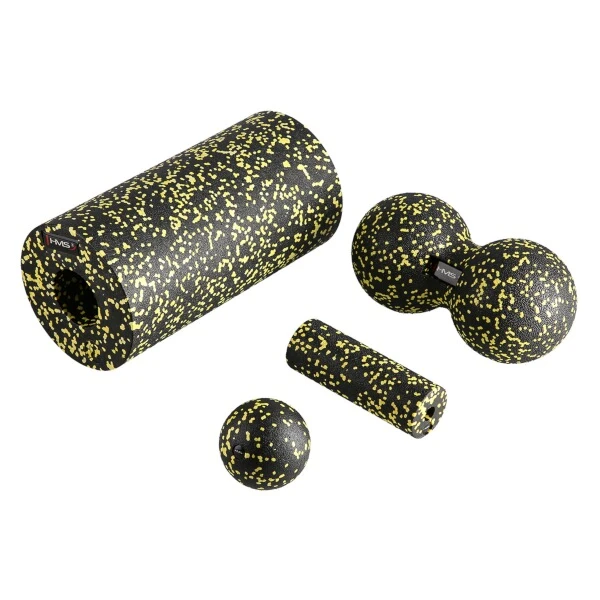 Masážní souprava HMS FSBM04 je dokonalým nástrojem pro automasáž, který obsahuje vše pro udržení zdraví vašeho těla. Malý míček o průměru 8 cm je přesně to, co potřebujete k masáži spoušťových bodů a míst s napjatými fasciemi. Dvojitý míč HMS je ideální pro terapii hlubokých svalových skupin nebo těžko přístupných oblastí těla, jako je krk, hýždě, ramena a hrudník. S mini válečkem si můžete uvolnit předloktí nebo chodidla. Velký válec je nejzákladnějším zařízením pro rozbíjení napětí na velké ploše.