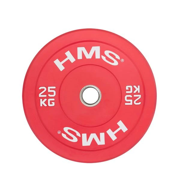 Barevný bumper kotouč HMS vhodný pro vzpěračský a funkční trénink. Jeho hlavním parametrem je odolnost, kdy i po odhodu z velké výšky, zůstane kotouč i podloží bez známky poškození. Kotouč je určen pro olympijské osy s průměrem trnů 50 mm a je zbarvený dle závodních parametrů.