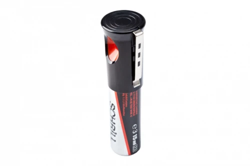 Zvuk odrazuje útočníky a přitahuje pozornost zločinců. Držte pískací alarm svisle a krátce stiskněte uzávěr.
