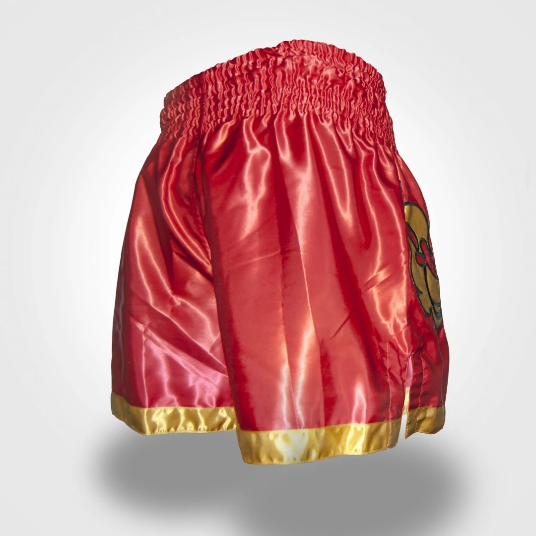 Thaibox trenky MACHINE v červené barvě. Z velice kvalitního saténu, na kterém je MUAY THAI výšivka . Výšivka je masivně obšita. Elastický pás zaručuje komfort a zároveň to, že trenky sedí tak jak mají a typycký střih zaručuje co nejlepší pohyb.