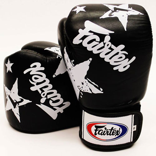 Boxerské rukavice Fairtex "Nation Prints" BGV1 - černéBoxerské rukavice Fairtex "Nation Prints" v černé barvě jsou vyrobeny z kůže prémiové kvality s třívrstvým pěnovým systémem Fairtex pro vynikající ochranu. Boxerské rukavice Fairtex skvěle padnu na ruku a jsou na suchý zip. Ergonomicky navržená konstrukce. Fairtex boxerské rukavice jsou vyrobeny v Thajsku.Fairtex