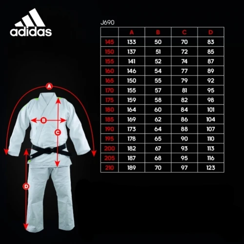 Kimono judo Adidas QUEST J690 - bíléKimono na judo Adidas QUEST v bílé barvě. Kimono Adidas je ušité ze 60% bavlny a 40% polyesteru s odolnou gramáží 690g. Kalhoty jsou vyrobeny ze 100% bavlny ( 180g ) s vyztuženými koleny. Kimono pro pokročilé judisty.Vlastnosti produktu:- Exkluzivní odolná tkanina- Trvanlivost i prodyšnost- Zesílené prošití- Podšívka- Vyšívané logo Adidas a pruhy na ramenouAdidas