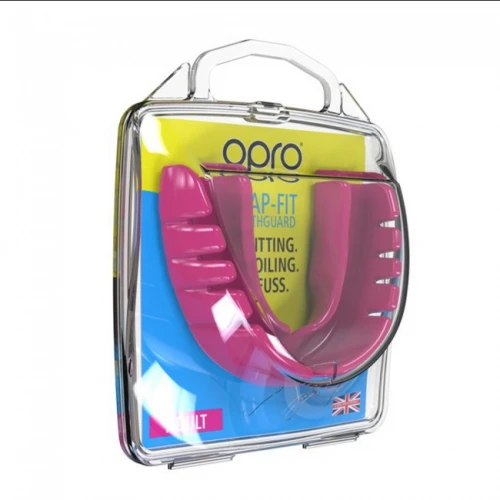 Chránič zubů OPRO Snap-Fit - růžovýJednoduchý chránič zubů od společnosti Opro. Vydání Snap-Fit, dobrá ochrana zubů. Chránič zubů se dodává s praktickým úložným boxem. Chránič zubů Gen4 Snap-Fit je vhodný pro začínající bojové umělce. Výhody chrániče zubů OPRO Snap-Fit- snadné dýchání- maximální pohodlí- dobrá ochrana- včetně úložného boxu- Junior / do 11 let- Senior / od 11 letOPRO