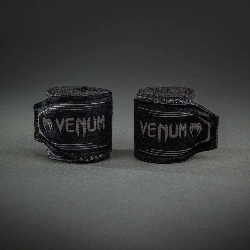 Směs bavlny a elastanu a bezpečné zapínání na suchý zip poskytují oporu a pomáhají stabilizovat ruce a zápěstí uvnitř boxerských rukavic, což vám umožňuje trénovat s plnou intenzitou a zároveň snižuje riziko zranění.  Tyto bandáže jsou pevné, odolné a prodyšné a jsou vhodné jak pro trénink bojových sportů, tak pro soutěže.     - Vyrobeno z elastické bavlny pro pohodlí a pevnost.    - Suchý zip pro bezpečné uzavření.    - S poutkem na palec pro snadné navíjení.    - Prodáváno v párech.    - K dispozici v různých délkách.    - Logo Venum.    - Suchý zip uzavřete, aby se při praní nezachytil o jiné prádlo.    - Použijte prací sáček, aby se bandáže nezamotaly.    - Sušte zavěšené.VENUM