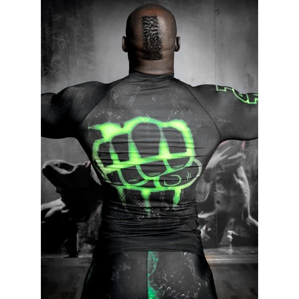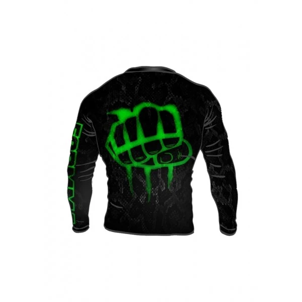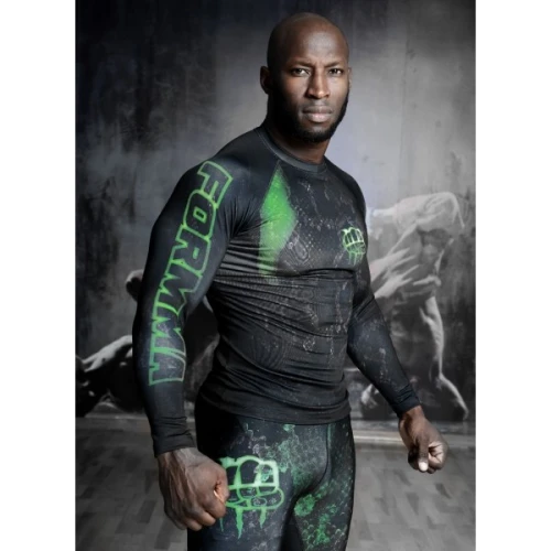 Rashguard FORMMA je vyroben z moderního materiálu, který vylučuje pot/vlhkost a udržuje svalstvo zahřáté. Materiál je antibakteriální, takže zamezuje potížím s citlivou pokožkou. Střih a materiál zaručují velmi příjemný pocit z užívání tohoto výrobku. FORMMA podtrhne tvoji individualitu! Skvělý design! Kombinace černé a zelené barvy s velkým logem pěsti na zádech, nápisem FORMMA na rukávu a malým logem pěsti na prsou v zelené barvě!