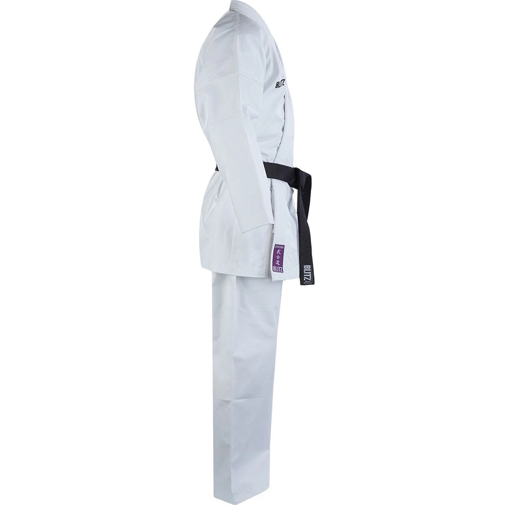 Dětské Kimono BLITZ Zanshin - bíléDětské Kimono Zanshin Middleweight v bílé barvě. Kimono na karate je hladké, měkké a příjemné na dotek. Dětské Kimono BLITZ je vyrobeno ze 100% tkaného bavlněného plátna. Kalhoty mají tradiční pas. - Evropský střih, rukáv a nohavice v plné délce- Dodává se s taškou na šňůrky pro uložení obleku- Pás není součástí dodávkyVáha kimona na karate je 12oz ( 340 g ).BLITZ