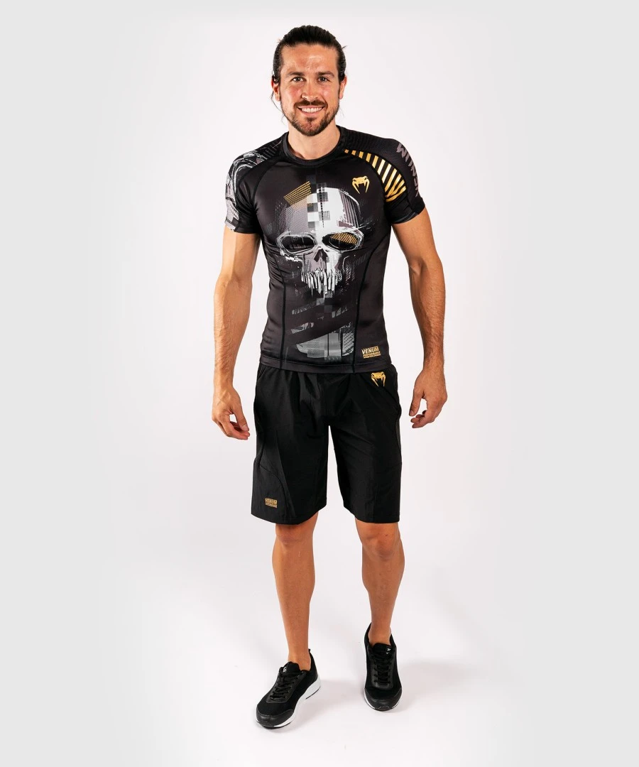 Rashguard VENUM Skull s KR. rukávem - černýElastický rashguard Venum Skull v černé barvě. Venum Trooper je ideální pro vaše intenzivní cvičení. Rashguard zlepšuje zotavení svalů a zabraňuje prochladnutí díky kompresní technologii Venum. Stylový, ale funkční rashguard Trooper bude perfektní pro váš trénink bojových sportů. Lze ho, ale využít například na trénink MMA nebo WRESTLING.Vlastnosti produktu:- 87% polyester - 13% elastan.- TECHNOLOGIE kompresní Zlepšuje krevní oběh svalů a urychluje regeneraci.- Zesílené švy- GUMA- Venum logo. VENUM
