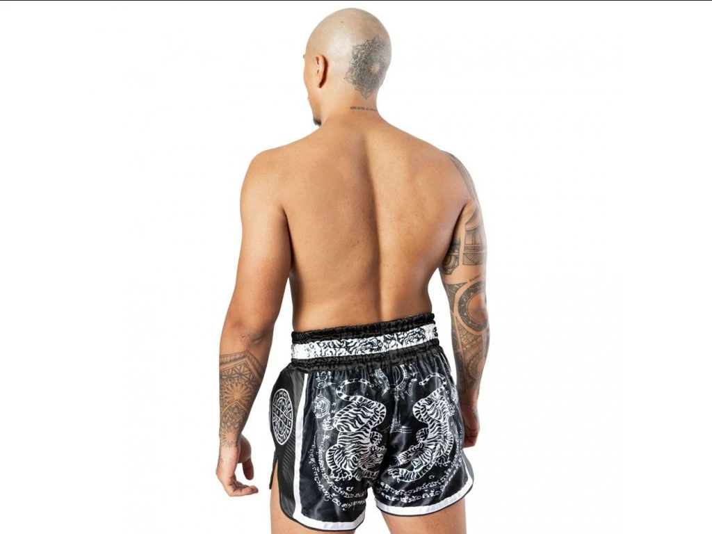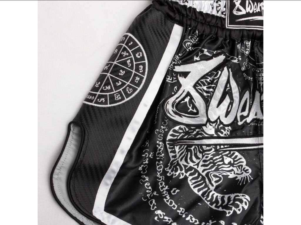 8 WEAPONS Muay Thai trenýrky Carbon - SAK YANT TIGERS - černo/bílé8 WEAPONS Muay Thai trenýrky Traditional Carbon - SAK YANT TIGERS. Muay Thai šortky jsou vyrobeny z vysoce kvalitního saténu s velmi robustním prošíváním, trvanlivost zaručena!!! Muay Thai trenky mají úzký provedení pás pro pohodlné nošení.- Materiál: 100% satén- Nízký pas velmi pohodlně sedí na těle- Design v s thajskými motivy- Vyrobeno v Thajsku z nejlepších materiálů