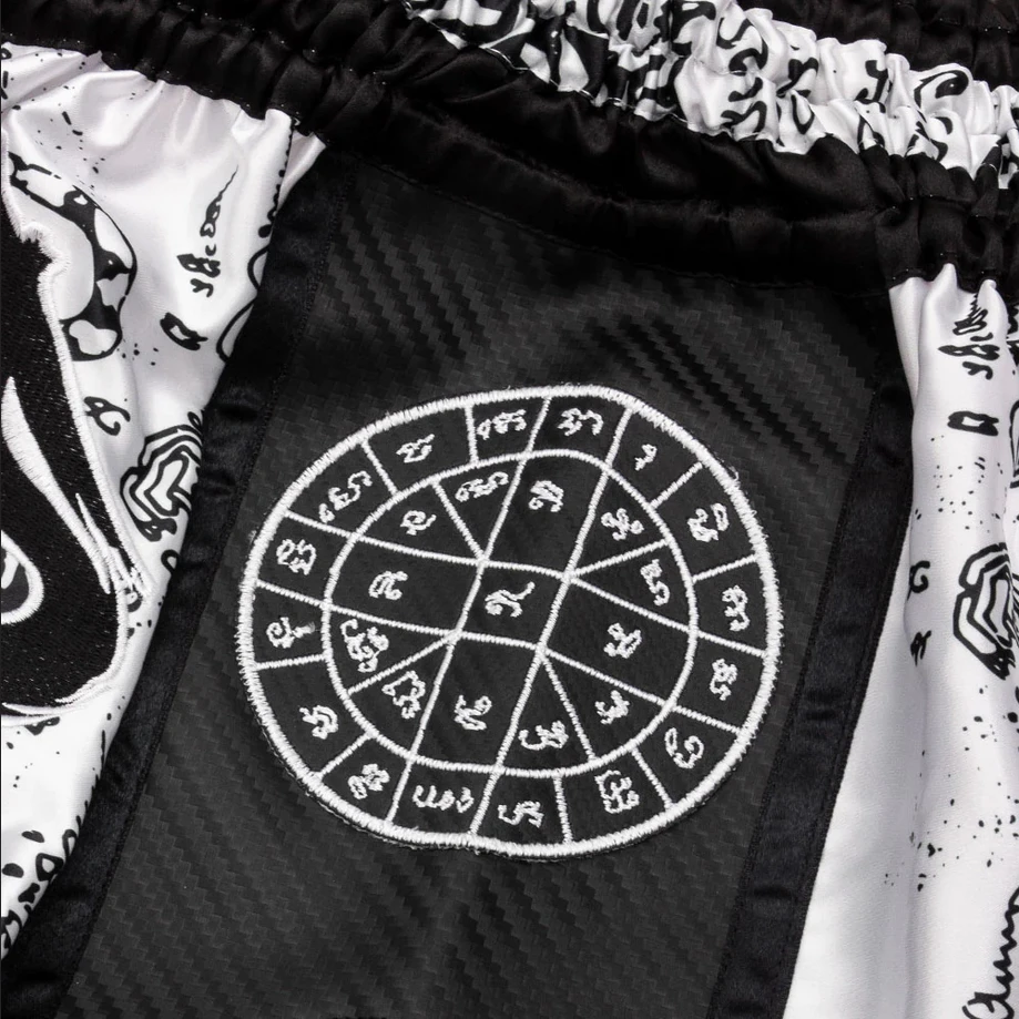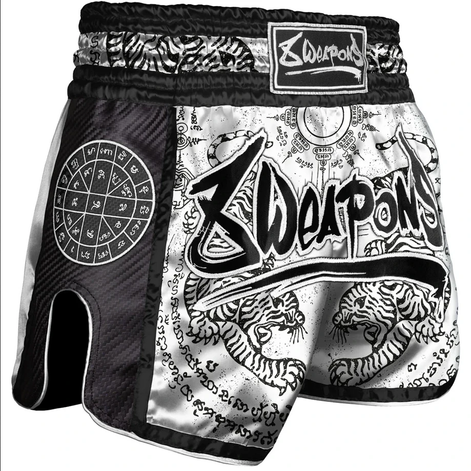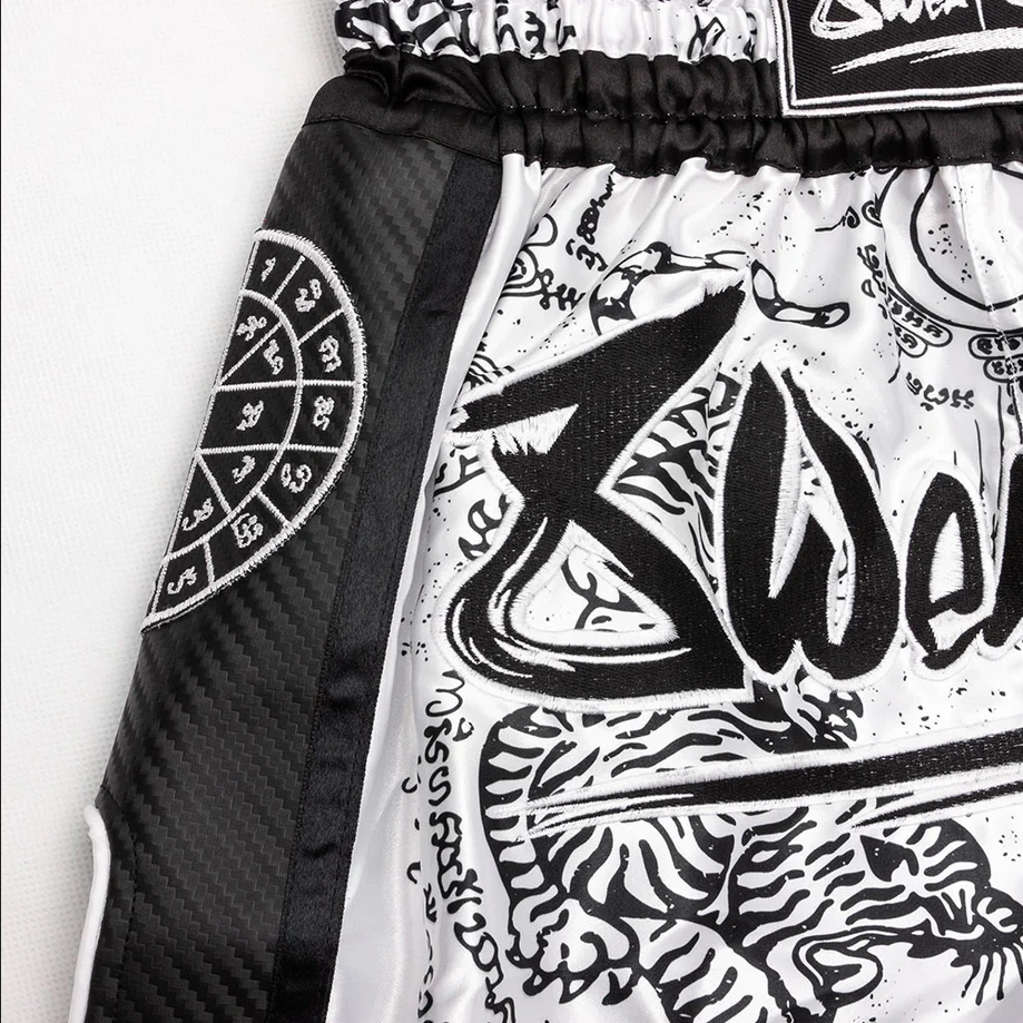 8 WEAPONS Muay Thai trenýrky Carbon, Sak Yant Tigers - bílé