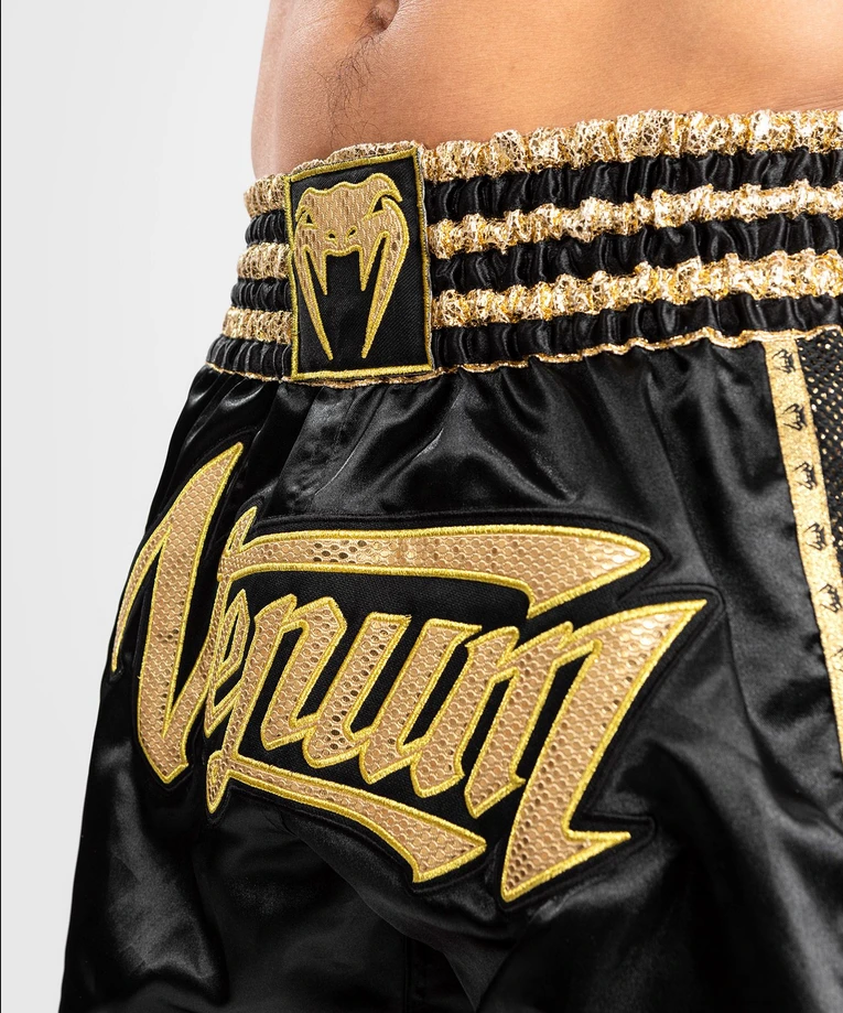 Thai trenýrky VENUM Absolute 2.0 - černo/zlatéVenum Absolute 2.0 Muay Thai kombinuje kvalitu a design. Šortky na thajský box Venum jsou navrženy s ohledem na thajskou tradici a jsou vyrobeny z lehkého a pružného polyesteru pro maximální pohyblivost v ringu. S dělenými boky pro zvýšení flexibility a odolnosti. - Široký tradiční pas se stahovací šňůrkou: pro optimální podporu šortek kolem pasu.- Vyrobeno v Thajsku.- Postranní rozparky- Sametový efekt a zlaté nášivky- Venum logoVENUM
