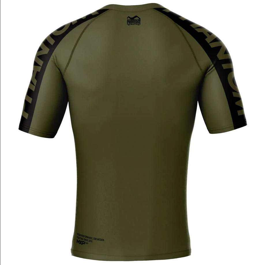 PHANTOM Rashguard EVO APEX - zelenýRashguard PHANTOM EVO APEX v zelené barvě. Rashguard přiléhá těsně ke kůži a zajišťuje tak neomezenou volnost pohybu a příjemný pocit. Chrání vás také před odřeninami. Díky pružné čtyřsměrné strečové tkanině si rashguard udrží svůj tvar i v těžkých podmínkách. Pot a vlhkost jsou díky přiléhavé tkanině rychleji odváděny pryč, takže se budete cítit svěžeji a lehčeji.- Kompresní efekt pro lepší výkon- Maximální volnost pohybu- Prodyšnost a schopnost absorbovat pot- Sublimační proces tisku- Barva: černá / bílá- Materiál: 87 % polyester, 13 % spandexPHANTOM