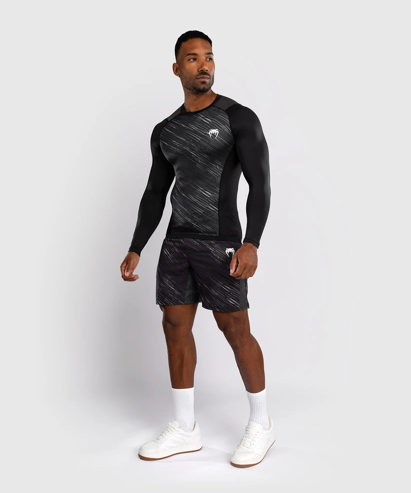Rashguard VENUM Rapid 3.0 Dl. rukáv - černo/šedýRychlost, obratnost a přesnost: Venum Rapid je kolekce bojového oblečení inspirovaná požadavky tréninku na nejvyšší úrovni. Rashguard Venum Rapid s dlouhým rukávem slouží jako ochrana , která poskytuje před zraněním i volnost pohybu při grapplingu. Kompresní technologie rashguardu také pomáhá podporovat regeneraci svalů. Zesílené švy v místech napětí mezitím pomáhají zajistit, že váš rashguard vydrží a vydrží i při tom nejintenzivnějším tréninku.- Materiál 1: 81 % polyester, 19 % elastan- Tkanina 2: 85 % polyester, 15 % elastan- Kompresní materiál- Dlouhé rukávy- Kulatý výstřih- Zesílené švy- Zesílené švy- Sublimovaná grafika- Sítotisk loga- Praní za studena / 30 °C.- Nesušit v sušičce- Nežehlete VENUM