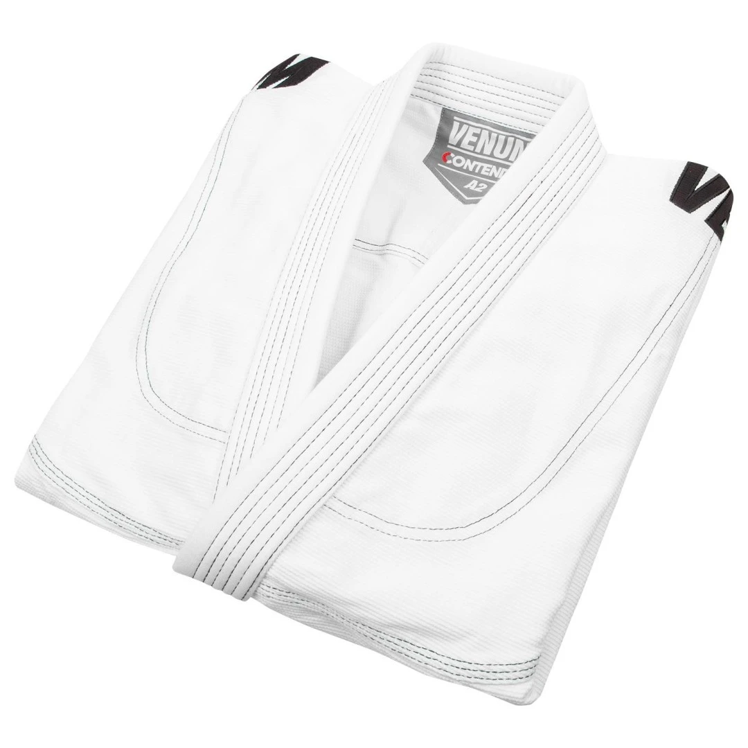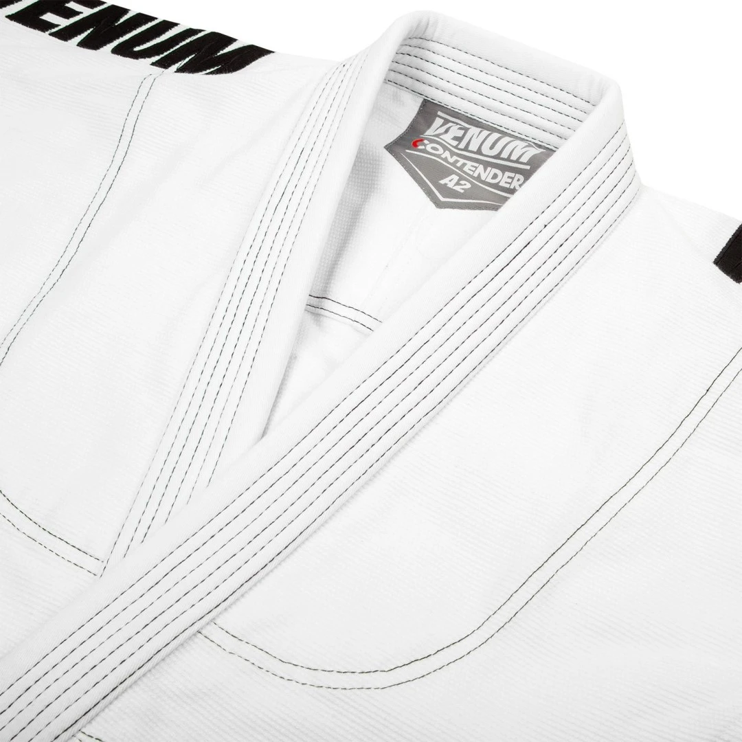 VENUM Kimono CONTENDER EVO BJJ GI - Bílé Venum hrdě představuje novou sérii kimon BJJ Contender EVO BJJ GI kimona Venum jsou navrženy tak, aby plně uspokojili ctižádostivé a nadšené BJJ příznivce ! S váhou 350GSM (gram na čtvereční metr) se řadí mezi nejlehčí VENUM kimona vůbec!Bunda je ze 100% Pearl Weave bavlny, dokonale kombinuje sílu v vytrvalost. Spolu s vyztuženými švy se nemusíte bát roztržení! Kalhoty 230 gsm jsou vyrobeny za 100% vysoce kvalitní bavlny a jsou lehké jako pírko! Díky své lehkosti poskytuje EVO BJJ GI VENUM CONTENDER neomezený rozsah pohybu! Velmi pohodlné - Velmi lehké Vlastnosti: - Pearl Weave bavlna - odolnější materiál.- Kabát 350 gsm s vyztuženými švy pro dlouhou životnost.- Optimální odvod vlhkosti.- Kalhoty 230 gsm, 100% bavlna se zesíleným prošitím na vnitřní straně nohou a u kotníků po obvodu.- Mimořádně rychlý upínací systém šňůrkou.- Vyšívané Venum logoTabulka velikostí kimona BJJ VENUM: VENUM