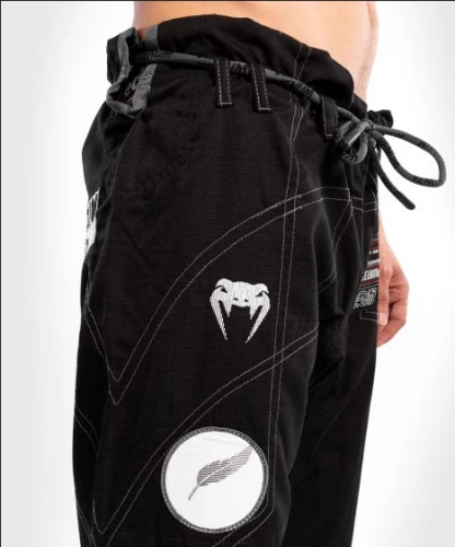 VENUM Kimono Elite Light 3.0 BJJ Gi - černé Kimono Venum Elite Light 3.0 pro brazilské jiu-jitsu se skládá z bavlněné bundy Pearl Wave o gramáži 350 g/m2, která je pevně vyztužena ve všech napínacích zónách pro zvýšení odolnosti. VENUM Kimono Elite Light 3.0 BJJ Gi v černé barvě. Pevný a odolný límec z materiálu EVA si snadno poradí s úchopy soupeře a vydrží i ty nejsilnější zlomy úchopů. Jeho lehkost vám poskytne maximální pohodlí a pomůže vám přijít na váhu při soutěžích. Vlastnosti: - Materiál: 100% bavlna,- Kabát 350 gsm s vyztuženými švy pro dlouhou životnost.- Kalhoty 227 gsm,- Silný vyztužený límec- pevnění tahových zón podšívkou Ripstop- Vnitřní zesílení podél nohavicVENUM