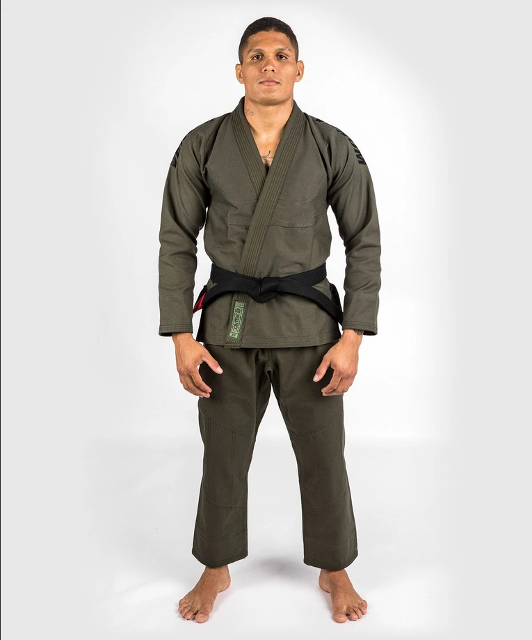 VENUM Kimono CONTENDER EVO BJJ GI - khaki Venum hrdě představuje novou sérii kimon BJJ Contender EVO BJJ GI kimona Venum jsou navrženy tak, aby plně uspokojili ctižádostivé a nadšené BJJ příznivce ! S váhou 350GSM (gram na čtvereční metr) se řadí mezi nejlehčí VENUM kimona vůbec!Bunda je ze 100% Pearl Weave bavlny, dokonale kombinuje sílu v vytrvalost. Spolu s vyztuženými švy se nemusíte bát roztržení! Kalhoty 230 gsm jsou vyrobeny za 100% vysoce kvalitní bavlny a jsou lehké jako pírko! Díky své lehkosti poskytuje EVO BJJ GI VENUM CONTENDER neomezený rozsah pohybu! Velmi pohodlné - Velmi lehké Vlastnosti: - Pearl Weave bavlna - odolnější materiál.- Kabát 350 gsm s vyztuženými švy pro dlouhou životnost.- Optimální odvod vlhkosti.- Kalhoty 230 gsm, 100% bavlna se zesíleným prošitím na vnitřní straně nohou a u kotníků po obvodu.- Mimořádně rychlý upínací systém šňůrkou.- Vyšívané Venum logoVENUM