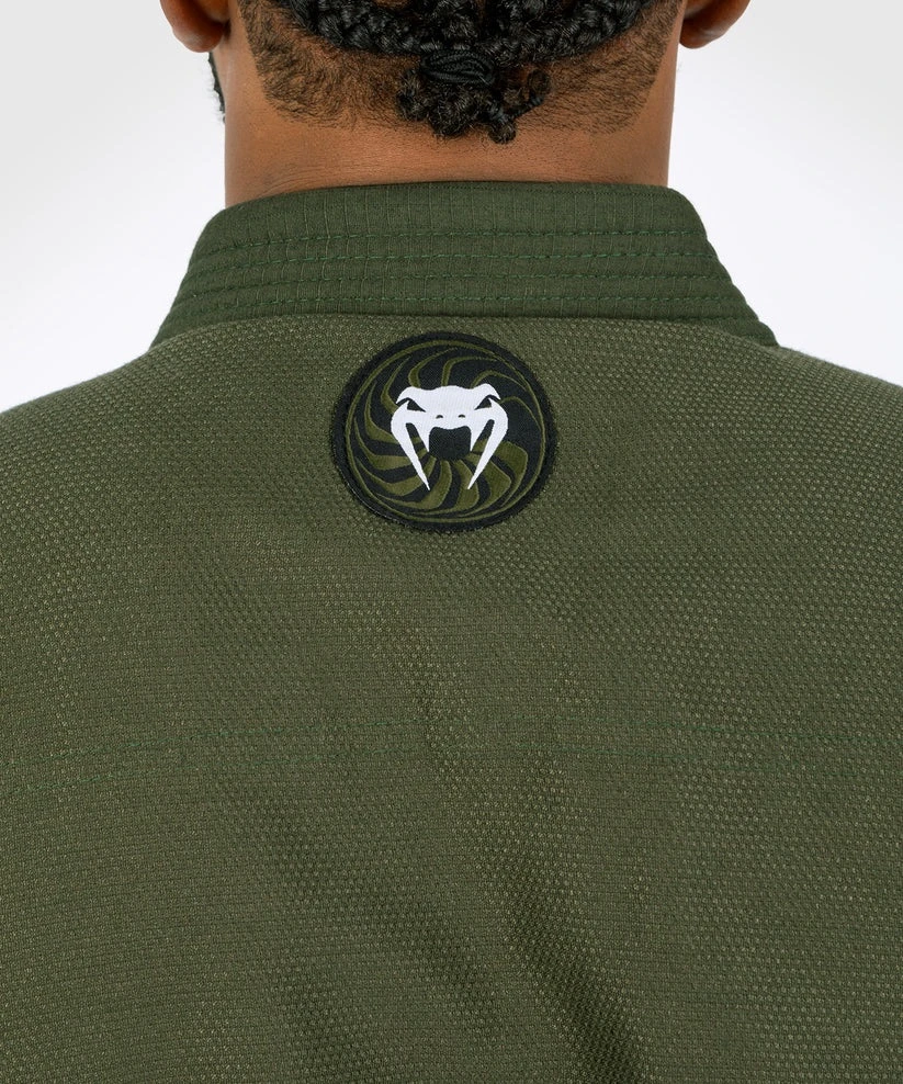 Kimono na BJJ Venum First GI - Khaki + Bílí pásek zdarmaKimono na BJJ (Brazilské Jiu Jitsu) Venum First BJJ Gi je navrženo pro ty, kteří začínají s Jiu-Jitsu. Bojovníky, kteří potřebují spolehlivé a kvalitní gi na základní úrovni.Kabát kimona na BJJ Venum je vyroben ze směsi bavlny a polyesteru o gramáži 325 g/m2, ultralehká tkanina s perleťovou vazbou a skvělou pevností. Zesílené prošívání na hrudi poskytuje větší odolnost, když bojujete na zemi.Kalhoty ke kimonu se stahovací šňůrkou jsou vyrobeny z 8oz ripstopové směsi bavlny a polyesteru. Jsou vyztuženy na namáhaných částech jako jsou kolena a rozkrok.Venum First BJJ Gi v Khaki barvě se vyznačuje šedofialovými nášivkami s bílými logy Venum na ramenou, spodním lemu a boku pro dokonalý vzhled. Dodáváno včetně bílého pásku zdarma. VENUM