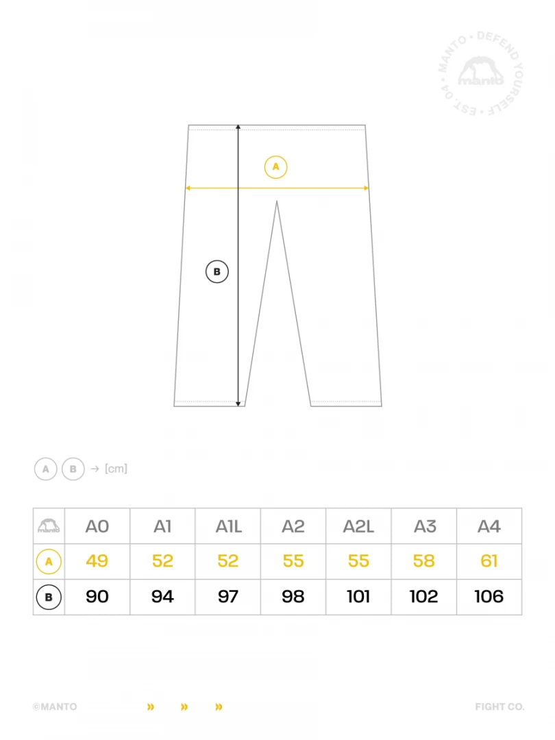 Kimono na BJJ MANTO "RISE 2.0" - černéKimono na BJJ MANTO "RISE 2.0" v černé barvě pro brazilské jiu-jitsu se skládá z bavlněného kabátu o gramáži 350 g/m2 a z bavlněných kalhot. Kalhoty ke kimonu se stahovací šňůrkou jsou vyrobeny z 8oz ripstopové směsi bavlny a kepru.- Uniforma brazilského jiu-jitsu (Gi/Kimono)- Tkanina s korálkovou vazbou 350 g/m2- Bavlněné keprové kalhoty 8oz- Zesílené švy- Rychleschnoucí límec vyplněný pěnou EVA- Dodáváno bez bílého opasku. A0-1300g, A1-1400g, A1L-1450g, A2-1550g, A2L-1600g, A3-1700gMANTO