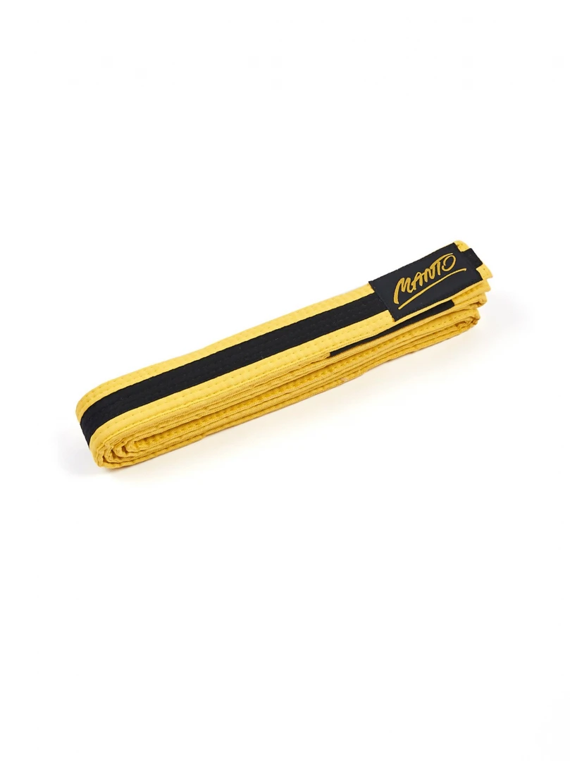 Dětský Pásek Manto BJJ TAG - žlutý s černým pruhemBJJ Dětský pásek MANTO - žlutý s černým pruhem. BJJ pásek je vyroben podle nejvyšších standartů. Tento pásek MANTO je vhodný pro BJJ GI Kimona.- Tkaný štítek MANTO- 100% bavlna- Velikosti: MO,M1,M2,M4- M0=225cm, M1=235cm, M2=245cm, M3=260cm, M4=275cm.Manto