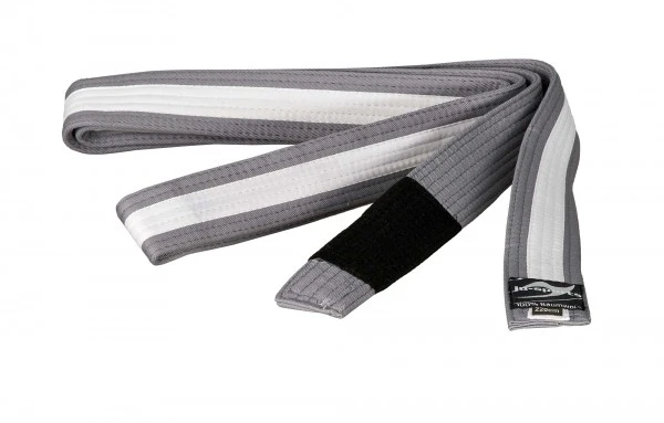 Dětský pásek na BJJ Ju Sport - šedý s bílým pruhemŠedý pásek s bílým pruhem ke kimonu na BJJ. Pásek je vyroben podle nejvyšších standardů. Dětský pásek Ju Sport na BJJ je 4 cm široký. BJJ Rank