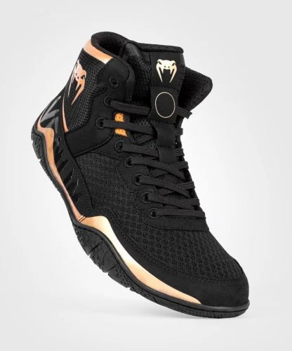 Venum Boty Wrestling Elite - černo/bronzovéZápasnická obuv Venum Elite byla vytvořena tak, aby podporovala vaši hbitost, přesnost a bezpečnost jako sportovce. Tato lehká bota má pružnou gumovou podrážku, která vám umožní volný pohyb a zároveň zachová pevnou trakci. Mezitím svršek s nízkým středem poskytuje vynikající oporu kotníku. Zápasnická obuv Venum Elite se skvěle hodí jak na běžný trénink, tak na soutěže. Díky stabilitě a lehké pružnosti je tento model ideální i pro box a tréninky v posilovně.- Konstrukce s nízkým středním střihem pro optimální oporu kotníku- Lehký svršek- Pružná gumová podrážka pro přilnavost, odolnost a pohyblivost- Pohodlí optimalizované anatomickou stélkou- Lepená stélka zabraňující riziku uklouznutí- Logo Venum na kotníku a na jazyku- Vhodné pro všechny úrovně- Ideální pro zápas, box a tréninky v posilovně- Svrchní síťovina: Materiál: 100% polyesterVenum