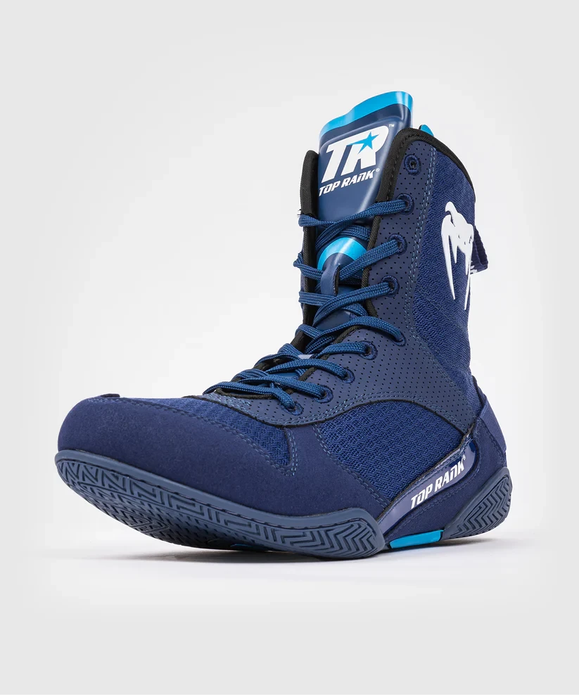 VENUM Boxerské boty X Top Rank Original - tmavě modréPředstavujeme společnou kolekci Venum x Top Rank Original. Boxerské boty Venum x Top Rank Original v námořnické modři vycházejí z nejprodávanějšího modelu boxerských bot Venum Elite, který nabízí dokonalou rovnováhu mezi stabilitou na plátně a lehkou pohyblivostí. Vynikající volba pro pravidelný trénink a soutěže, vynikající konstrukce této boty byla vyvinuta a zdokonalena na základě zpětné vazby od profesionálních boxerů. Boční výztuhy a výjimečná přilnavost na podrážce poskytují vynikající podporu a kontrolu. Plošší stélka zajišťuje další stabilitu celé boty a spojuje vás s ringem. Mezitím síťovina „honeycomb“ boty umožňuje noze dýchat i při těch nejintenzivnějších trénincích a poskytuje tak bojovníkům pohodlnou a dlouhotrvající variantu obuvi.- Trojmateriál: Materiál: Patentovaný PU lesklý, PU Flex, Mesh Honeycomb- Středně vykrojená konstrukce pro dynamickou boční podporu- Gumová podrážka pro přilnavost, odolnost a stabilitu- Pohodlí optimalizované anatomickou stélkou- Lepená stélka zabraňující riziku uklouznutí- Logo Top Rank na vnější straně chodidla a na jazyku- Logo Venum na patě a na horní části kotníku.