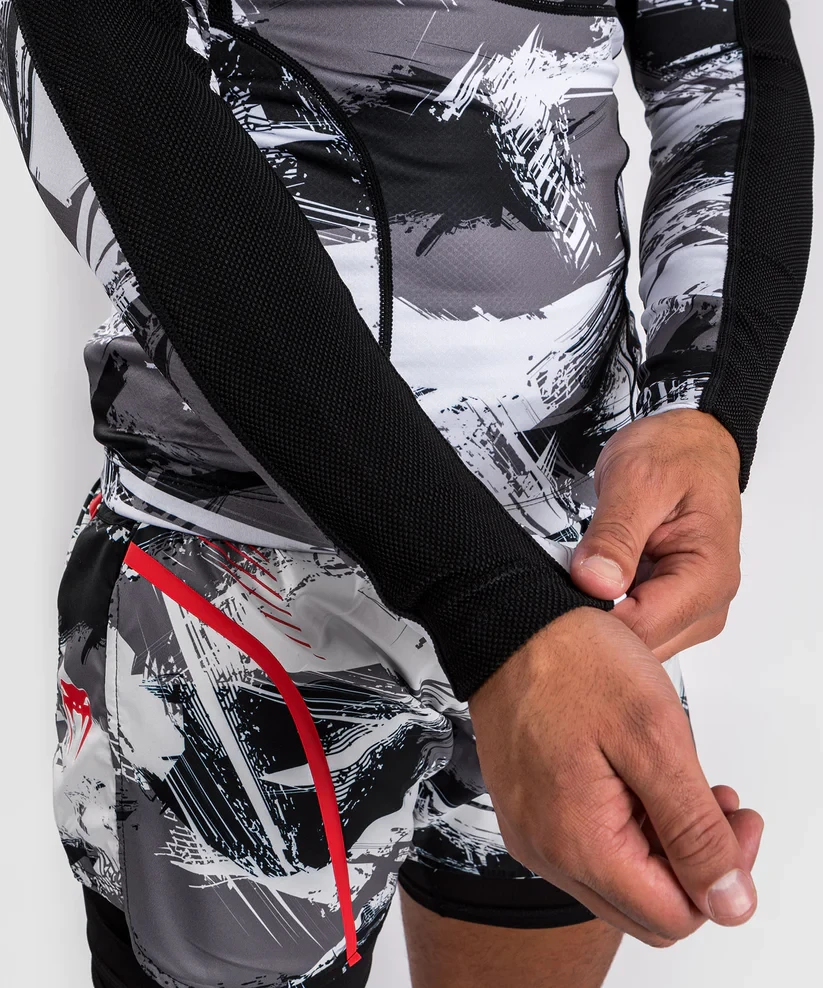 Rashguard VENUM Electron Dl.rukáv 3.0 - šedo/červenýVenum Electron 3.0 Slong Rashguard je určen pro sportovce a bojovníky a je ideální pro grappling, BJJ a MMA. Tento kompresní rashguard s dlouhým rukávem poskytuje ochranu a naprostou volnost pohybu. Rashguard Electron 3.0 je vybaven vložkami ze síťoviny, které umožňují rychlý odvod potu, takže můžete zůstat v suchu a teple během tréninku i po něm. Elastické pásky kolem pasu.- Materiál 1: 83 % polyester, 17 % spandex- Tkanina 2: 88 % polyester, 12 % spandex- Kompresní střih- Kulatý výstřih- Sítotisk loga VENUM