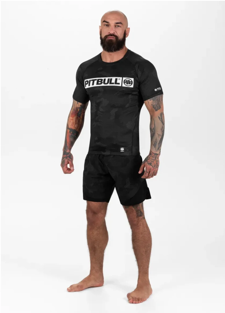 PitBull West Coast Rashguard Kr.rukáv Net Camo Hilltop II - černý