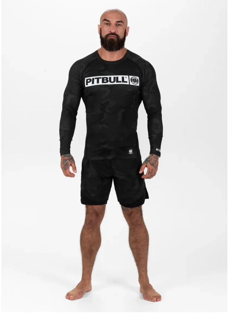 PitBull West Coast Rashguard Dl. rukáv Net Camo Hilltop II - černý
